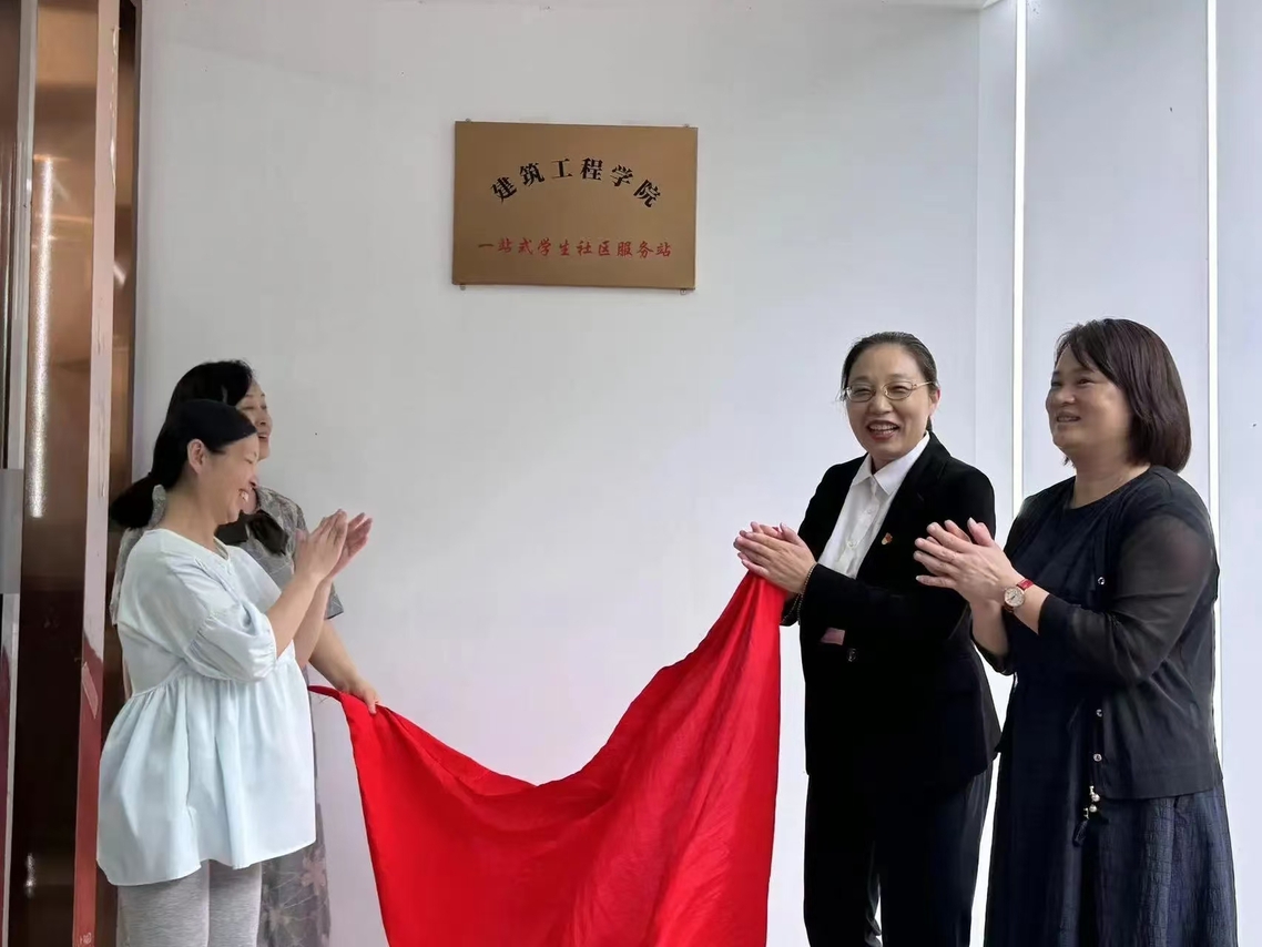 鲁晓芹、吴香珍、潘丽妍、吴小雅共同为建筑工程公司一站式员工社区服务站揭牌。
